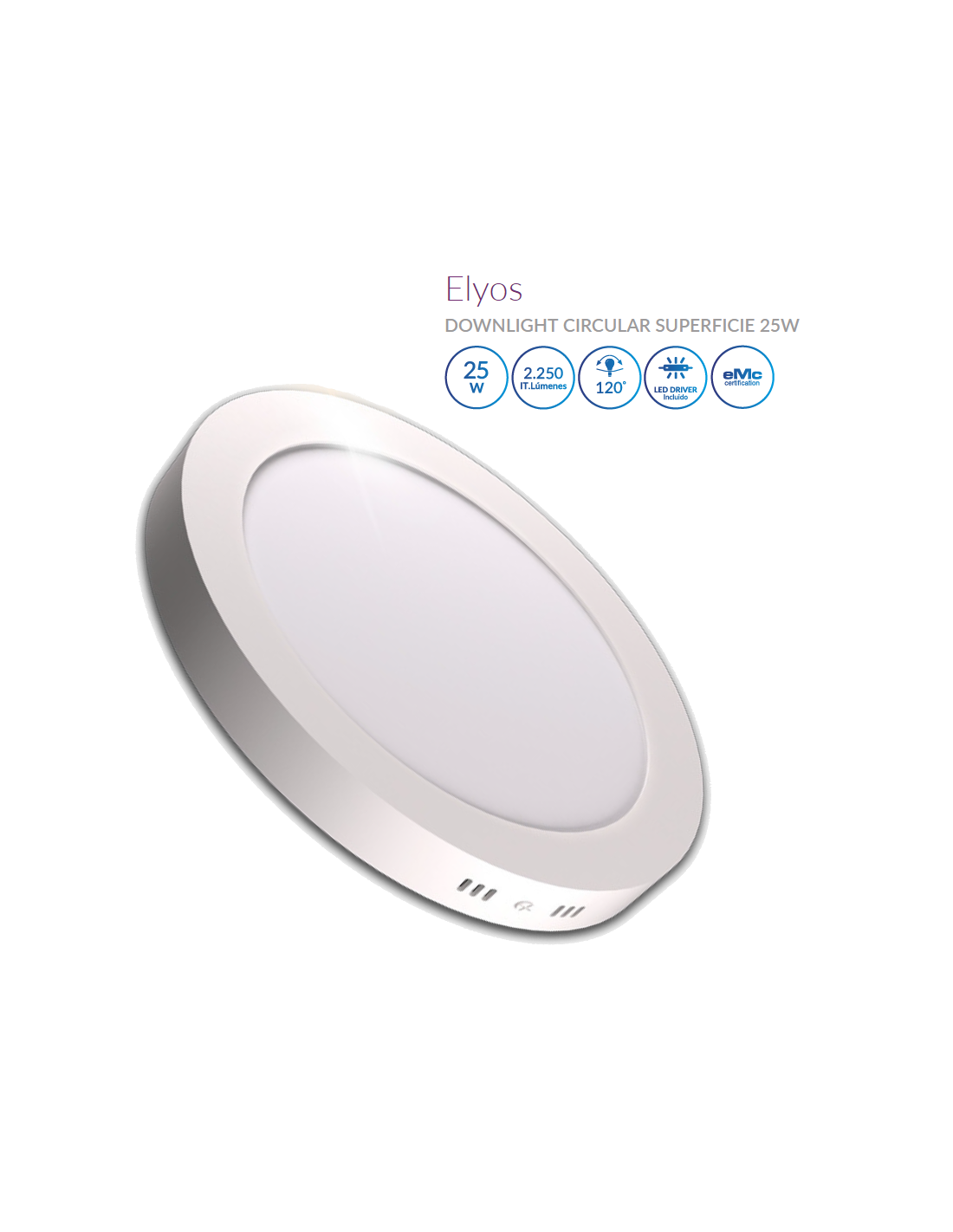 Downlight LED Circular de Superficie Blanco 25W. Luz blanca 5000K. 120º de apertura. 2250 lúmenes