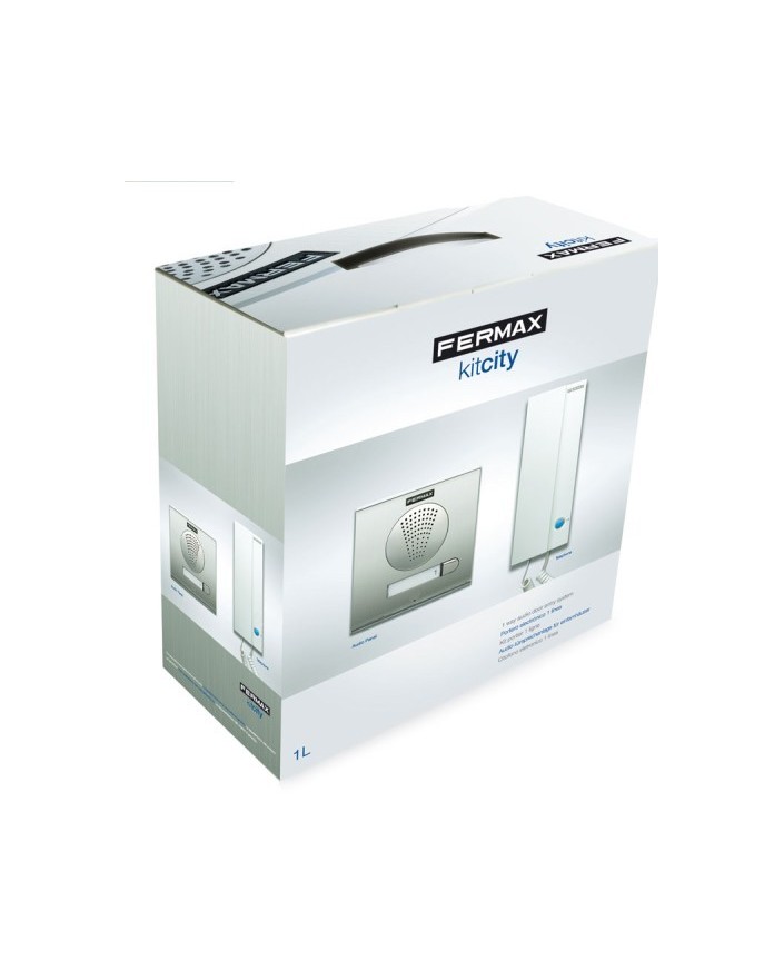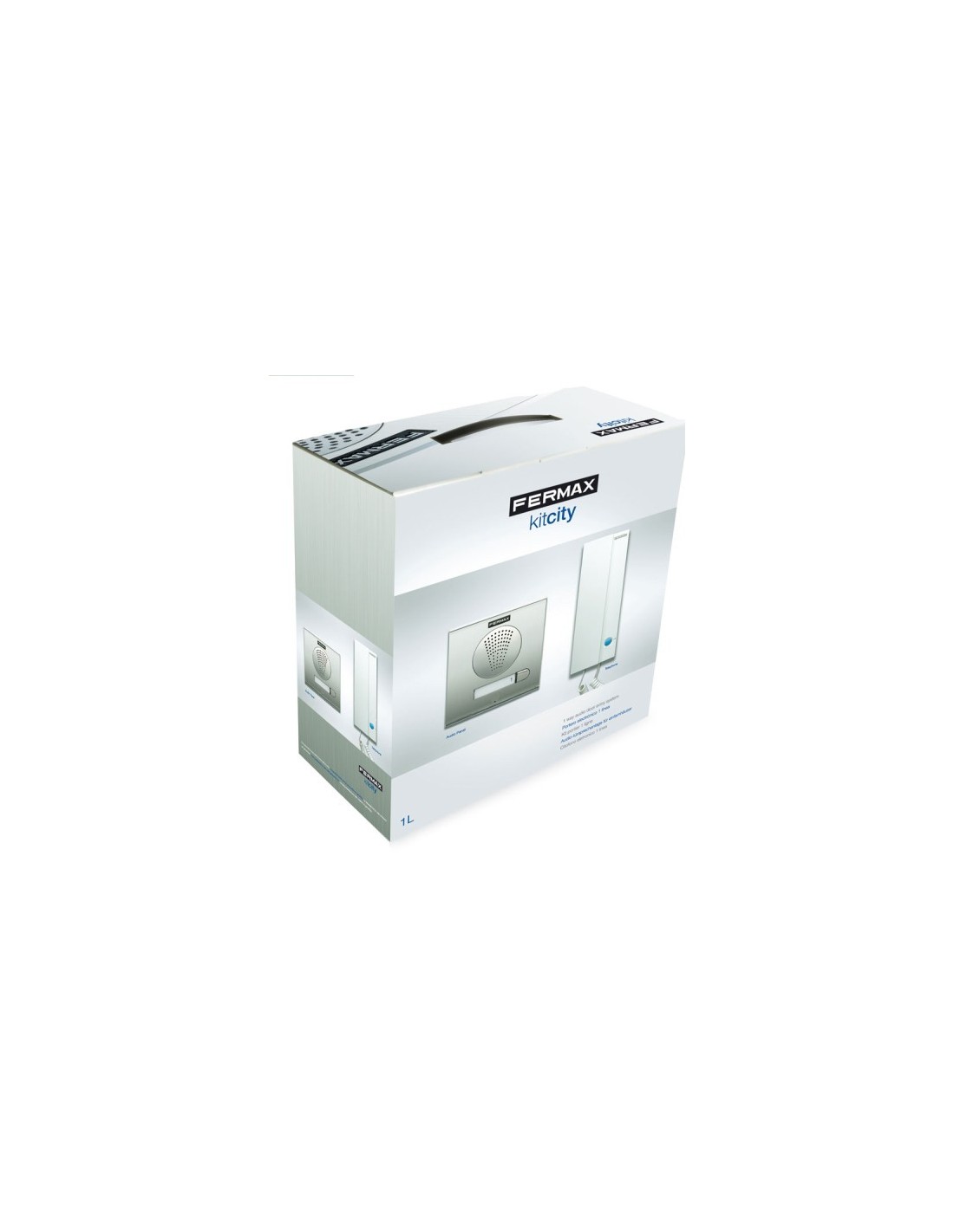 Los kits de portero para edificios incluyen todo el material necesario para una instalación completa y un funcionamiento inmediato: placa de calle y caja de empotrar, alimentador DIN 12Vac/1,5A (ref.4800) y 2 teléfonos LOFT.